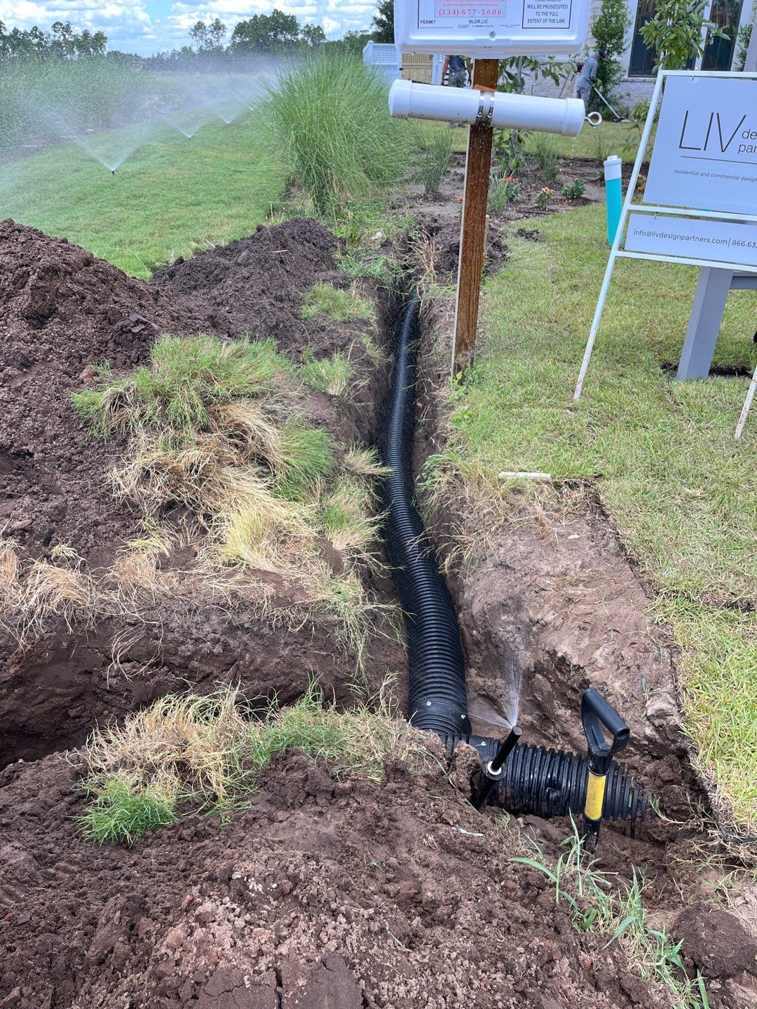 Recent Drainage Installation Watersound Camp Creek project to direct roof runoff to retention area. 6″ trunk lines with 4″ branches were utilized to provide proper gutter drainage on this project. Proper drainage and storm water management is crucial to responsible property and community development. Contact us for more information.