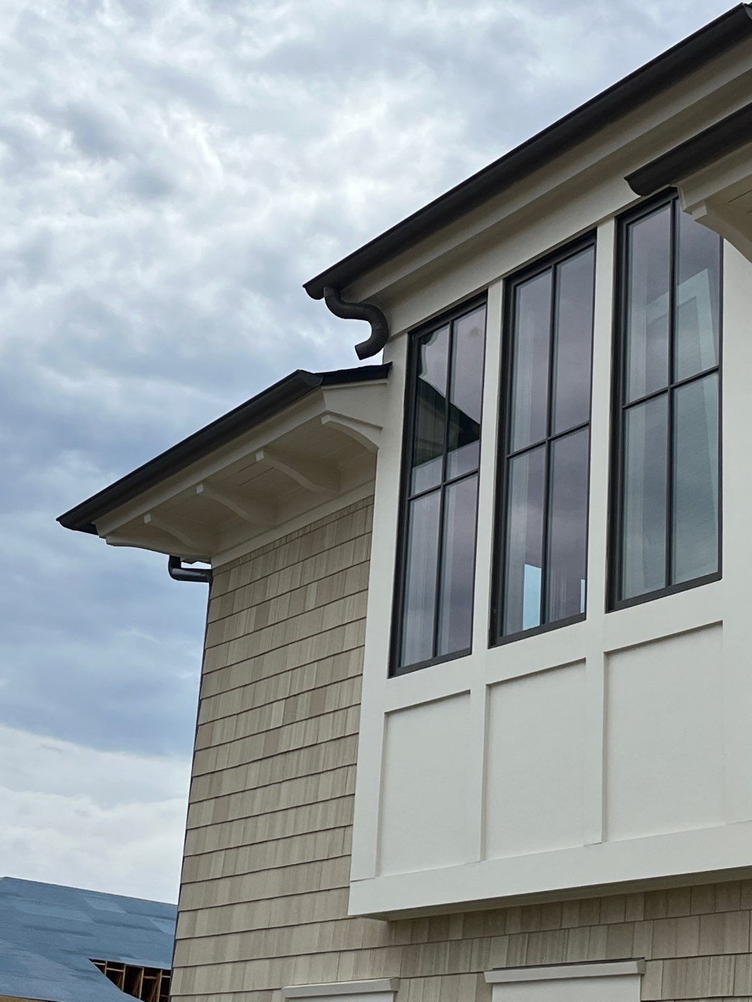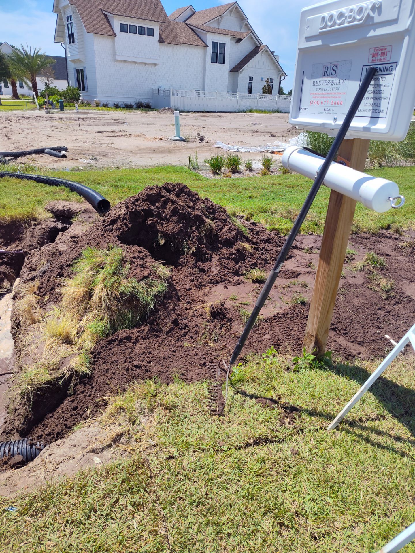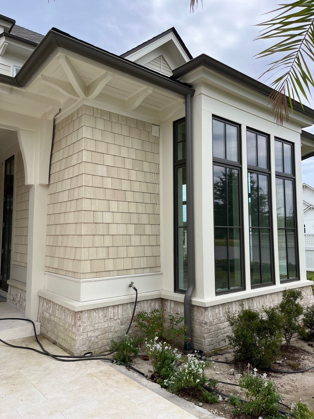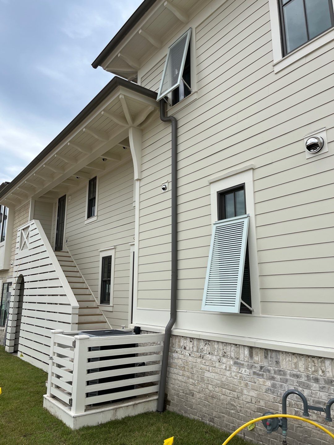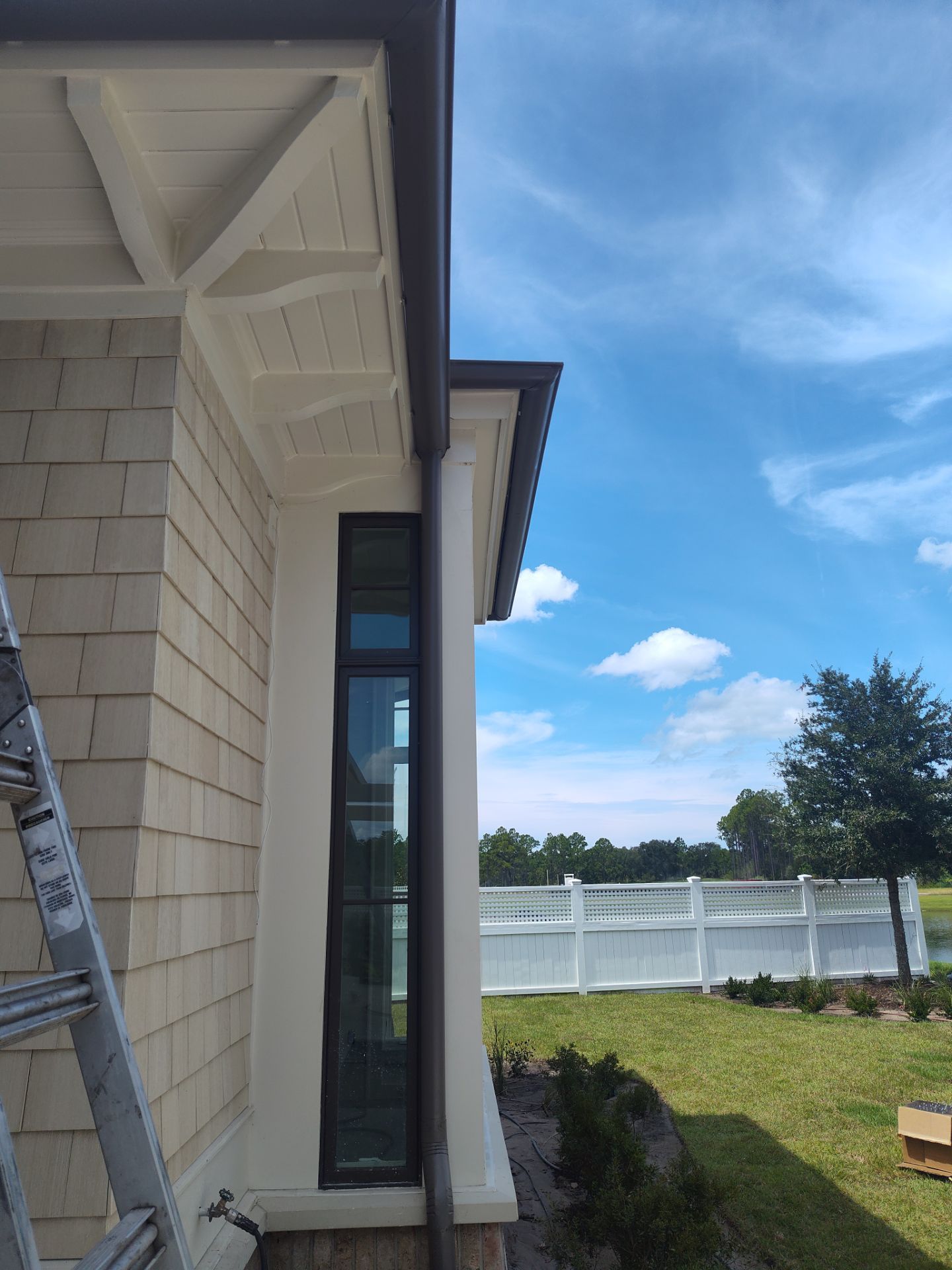 Recently Completed Gutter Installation in Watersound Camp Creek. This project includes approximately 600 linear feet of buried drainage and over 500 linear feet of gutters. We installed 6″ corrugated trunk lines with 4″ branches connected to all of the downspouts to take all of the roof runoff away from this beautiful home. The gutters are half round aluminum with round downspouts. The builder chose a terratone light bronze to match the roof. We can work closely with you and your builder to provide the best rain management system for your dream home. Contact us today here.