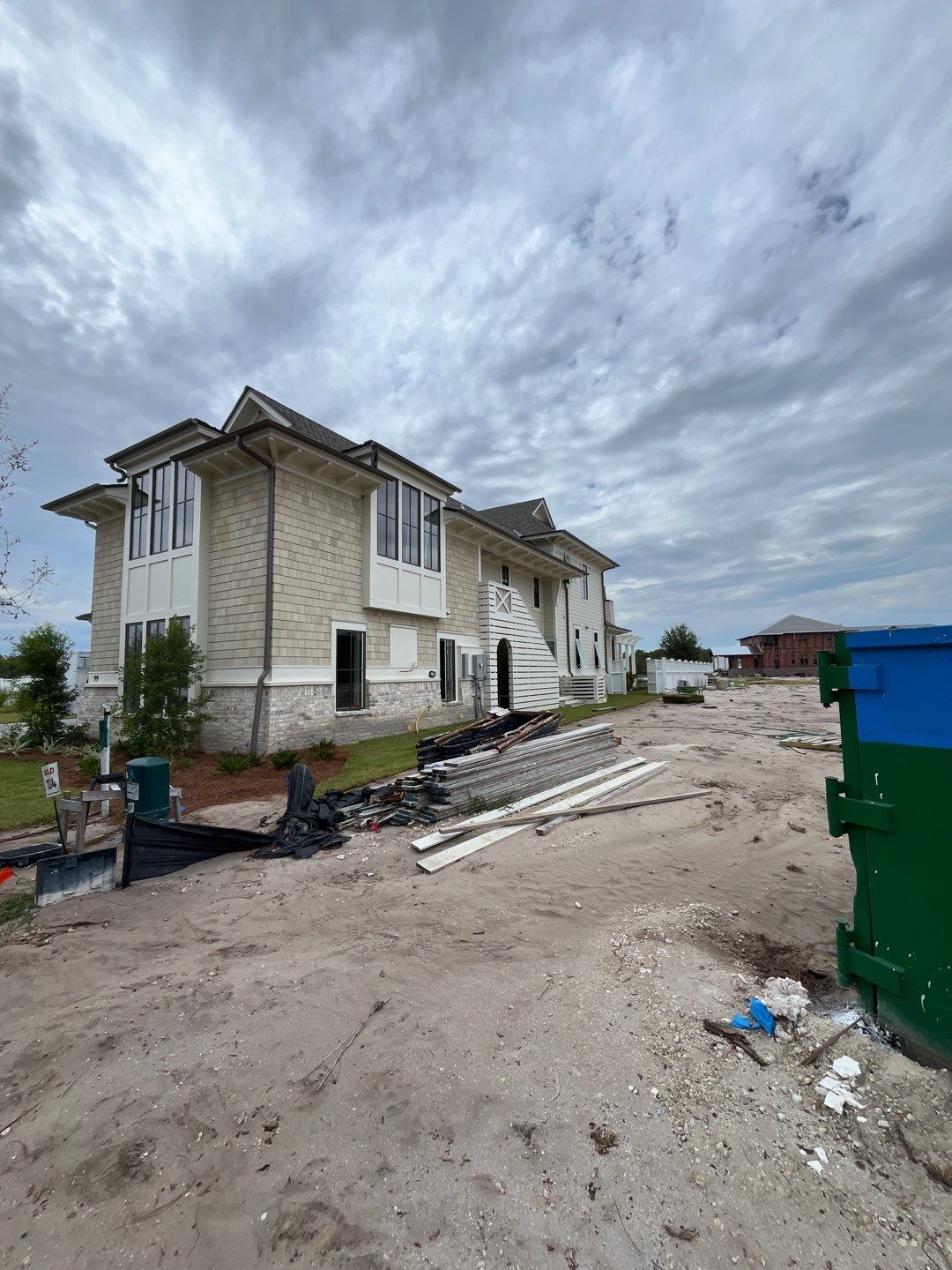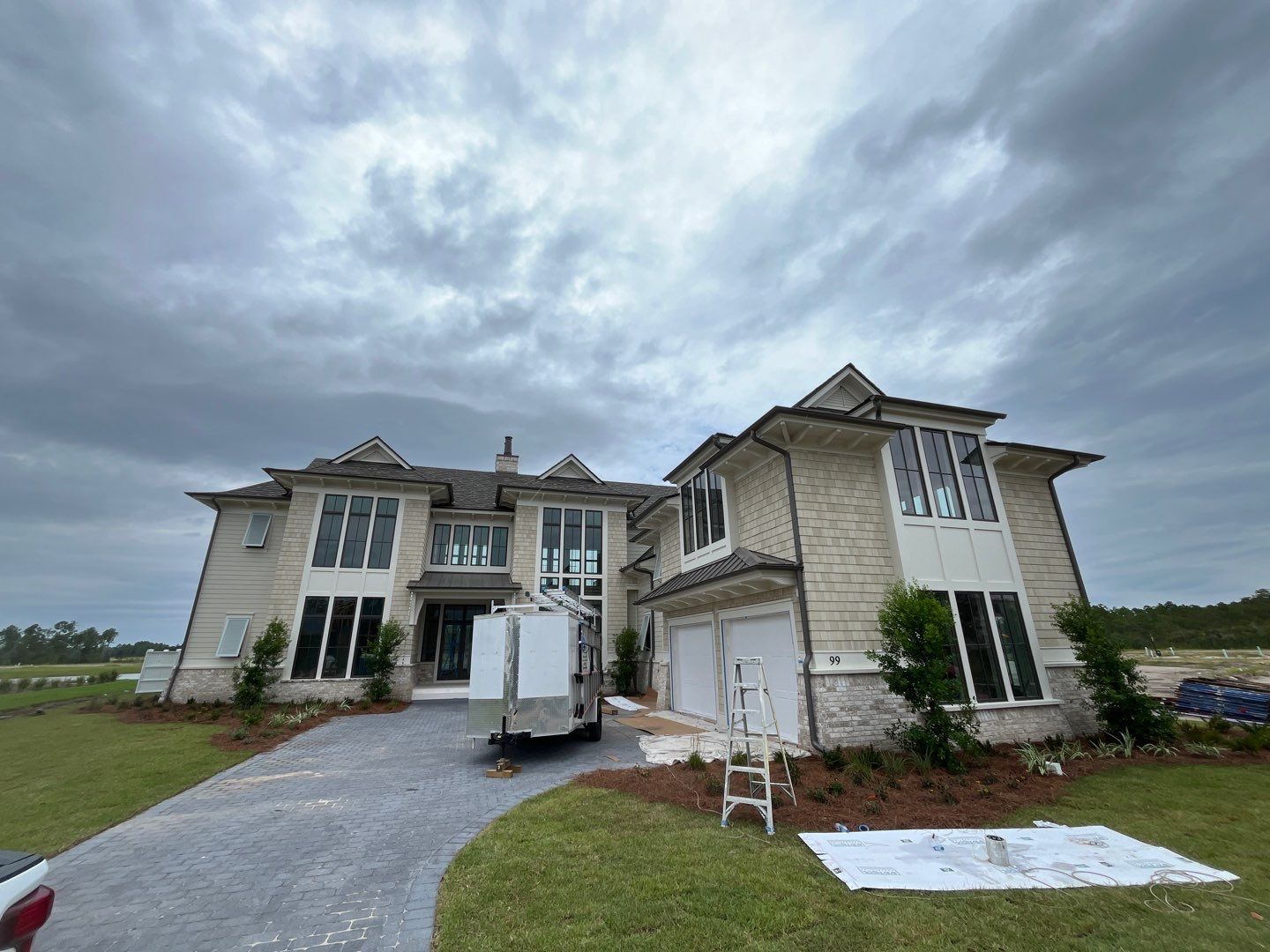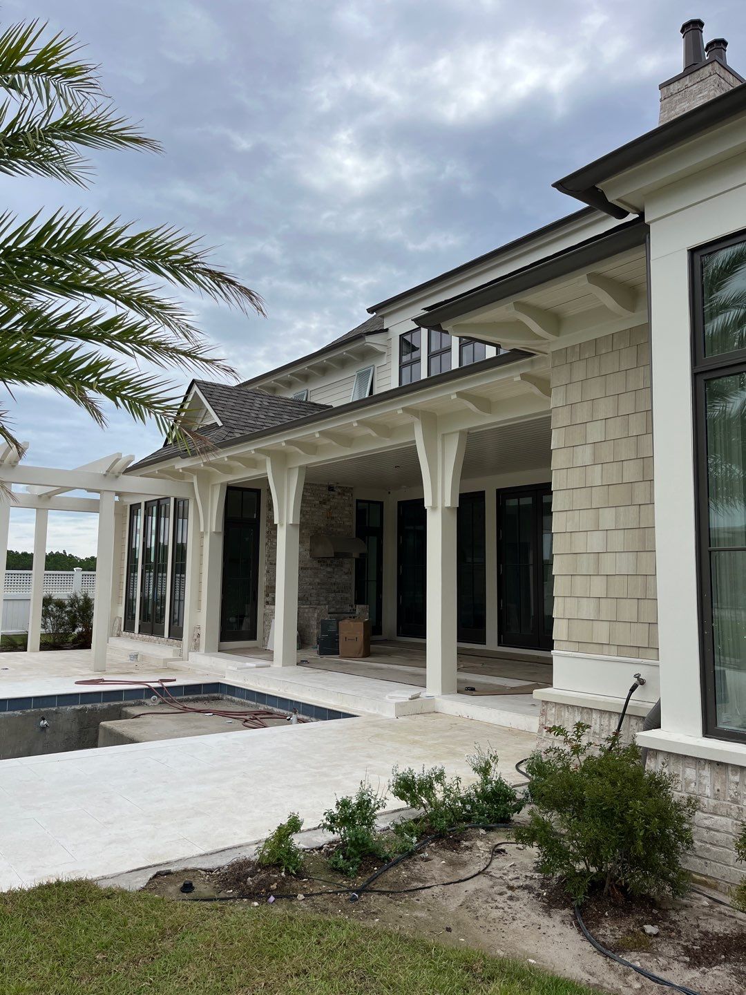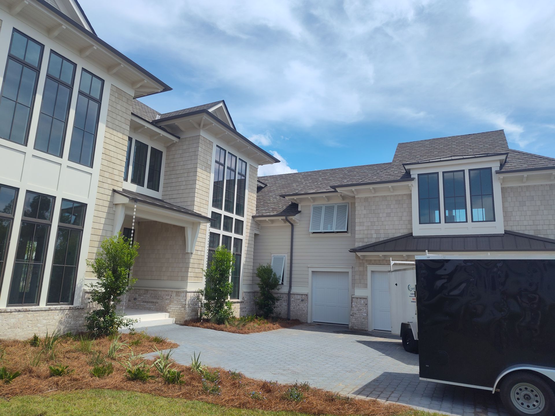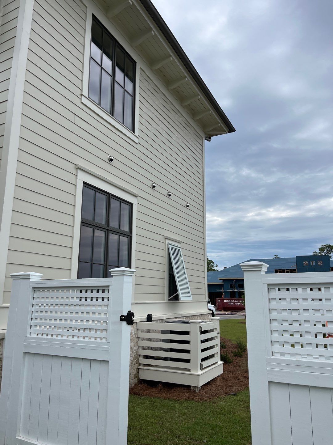 Recently Completed Gutter Installation in Watersound Camp Creek. This project includes approximately 600 linear feet of buried drainage and over 500 linear feet of gutters. We installed 6″ corrugated trunk lines with 4″ branches connected to all of the downspouts to take all of the roof runoff away from this beautiful home. The gutters are half round aluminum with round downspouts. The builder chose a terratone light bronze to match the roof. We can work closely with you and your builder to provide the best rain management system for your dream home. Contact us today here.