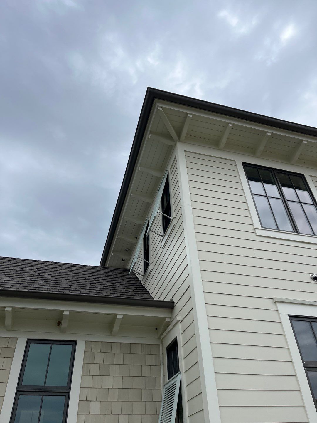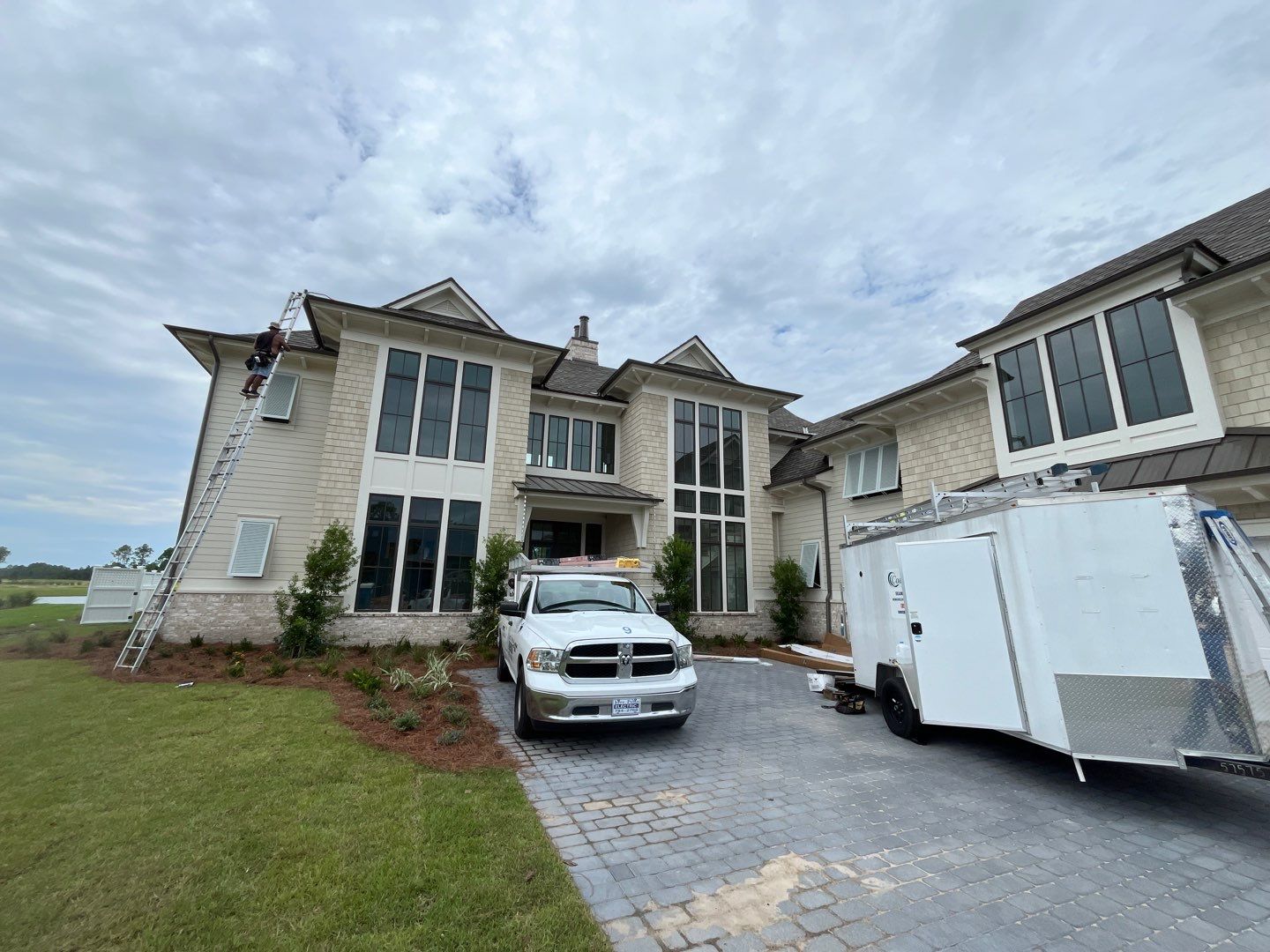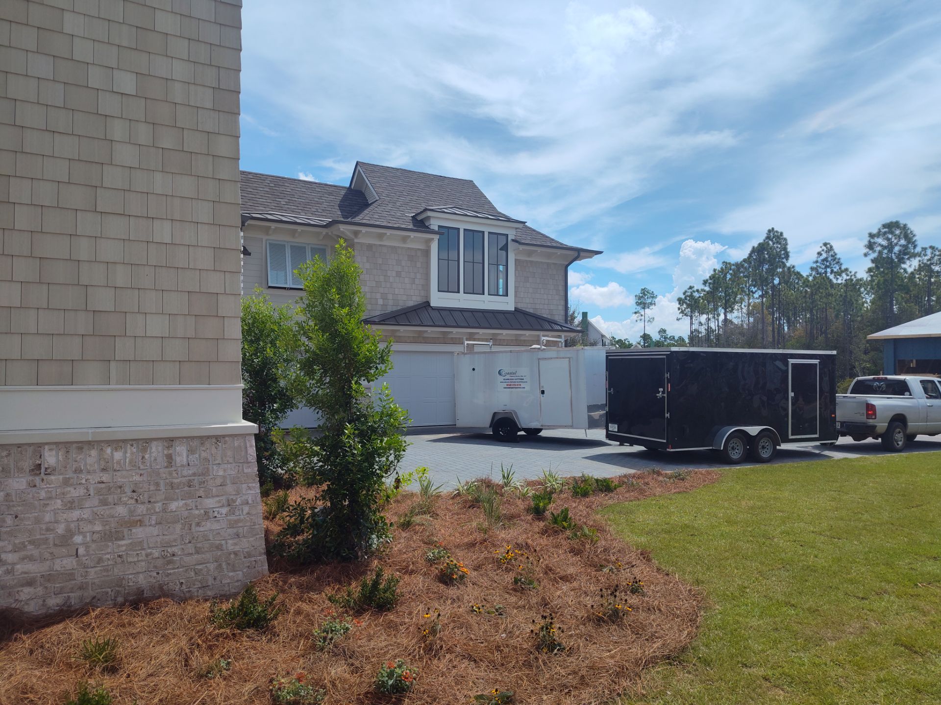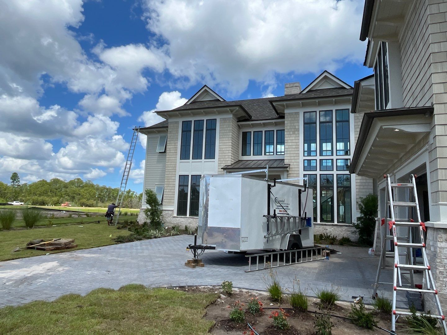 Recently Completed Gutter Installation in Watersound Camp Creek. This project includes approximately 600 linear feet of buried drainage and over 500 linear feet of gutters. We installed 6″ corrugated trunk lines with 4″ branches connected to all of the downspouts to take all of the roof runoff away from this beautiful home. The gutters are half round aluminum with round downspouts. The builder chose a terratone light bronze to match the roof. We can work closely with you and your builder to provide the best rain management system for your dream home. Contact us today here.