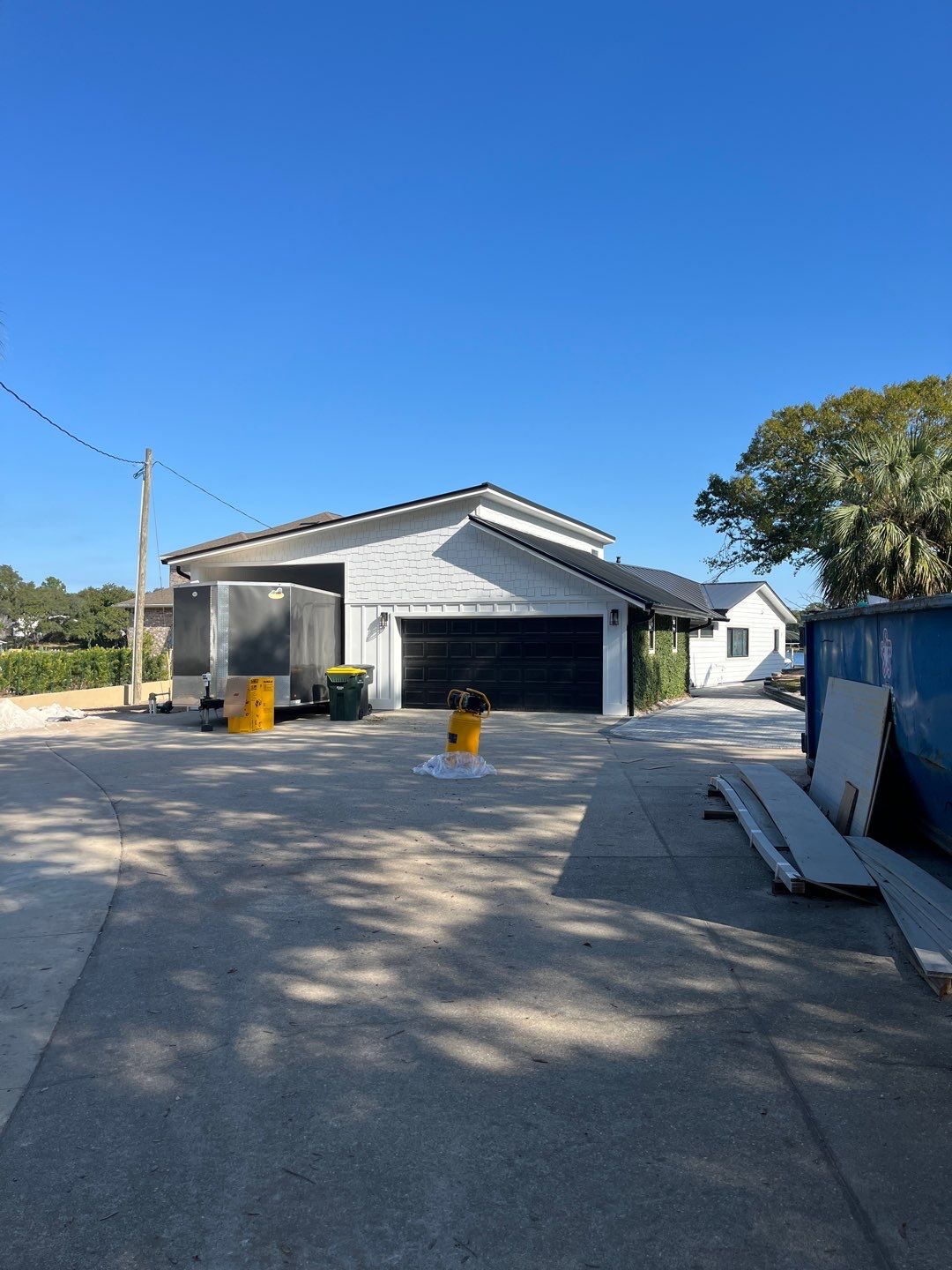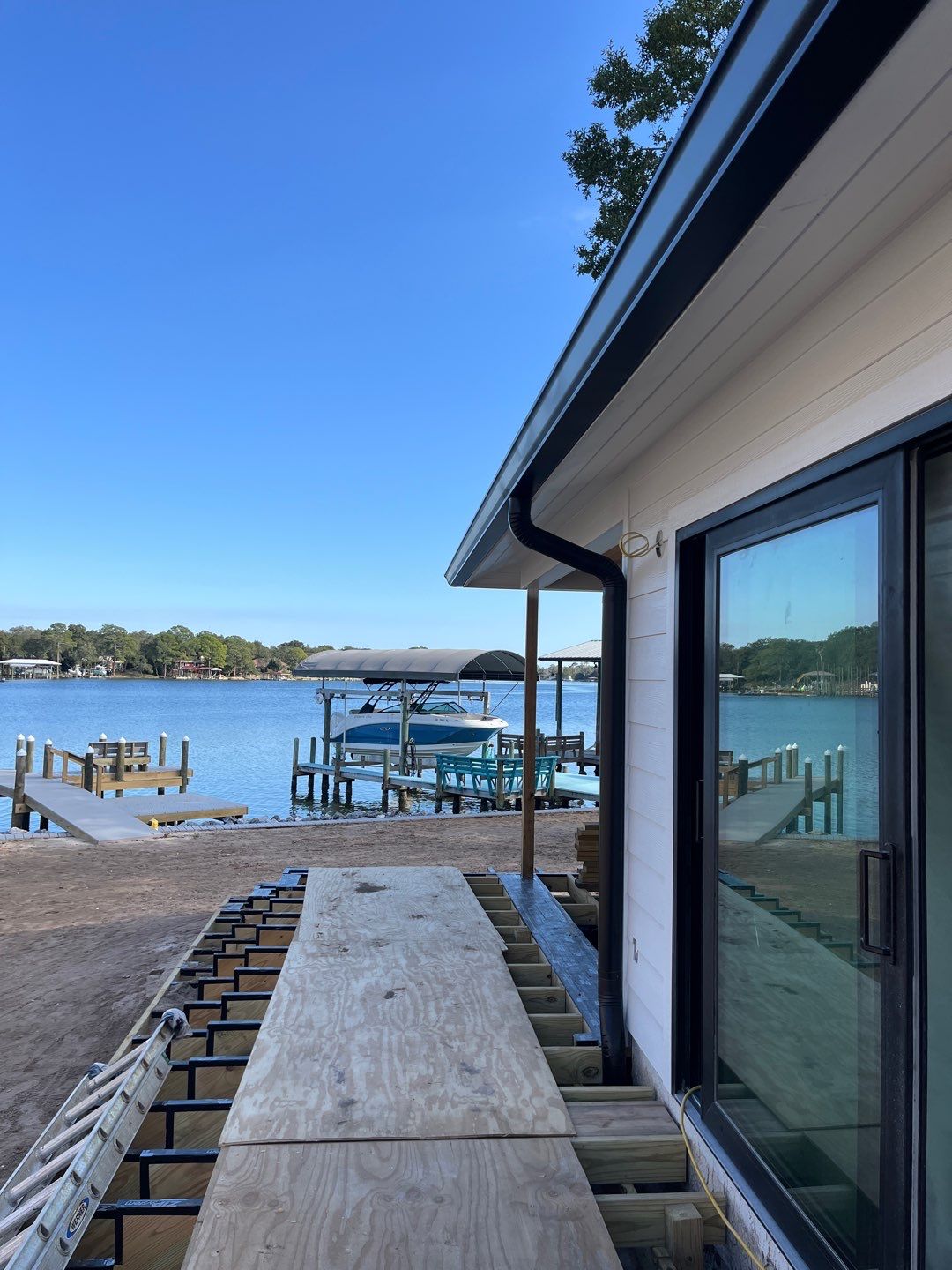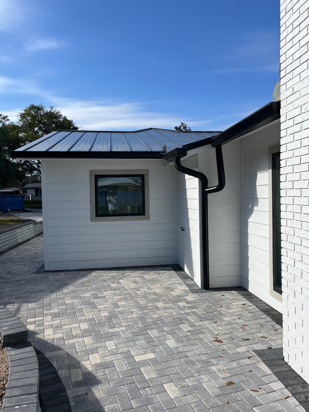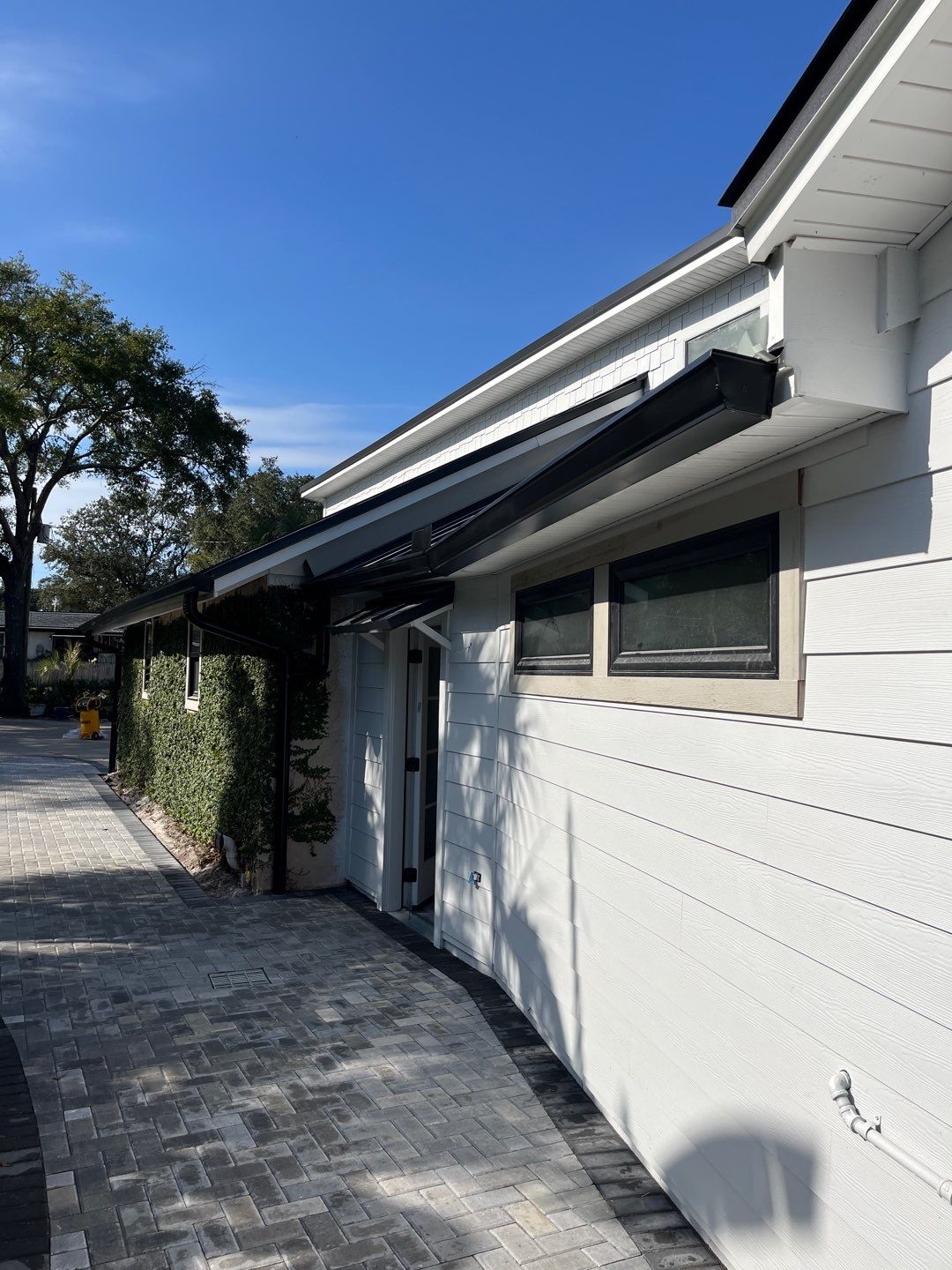 This client chose Black Seamless K style gutters with round downspouts to accentuate the new roof on there newly remodeled home. Form really meets style on this combination. We also added Smartflow leaf protection for a virtually maintenance free rain management system. The system ties into an underground drainage system. This system will protect their investment for many years to come! Call or text us today for your free quote at (850) 273-8770 or click here and fill out the form.