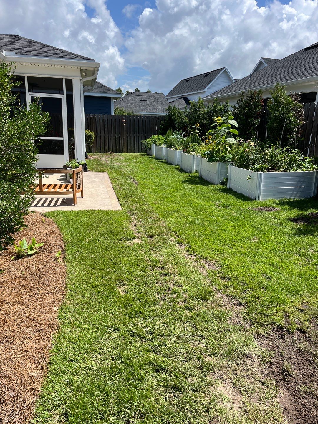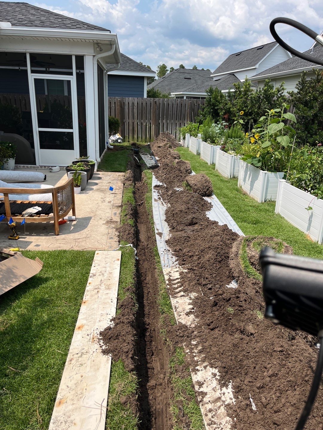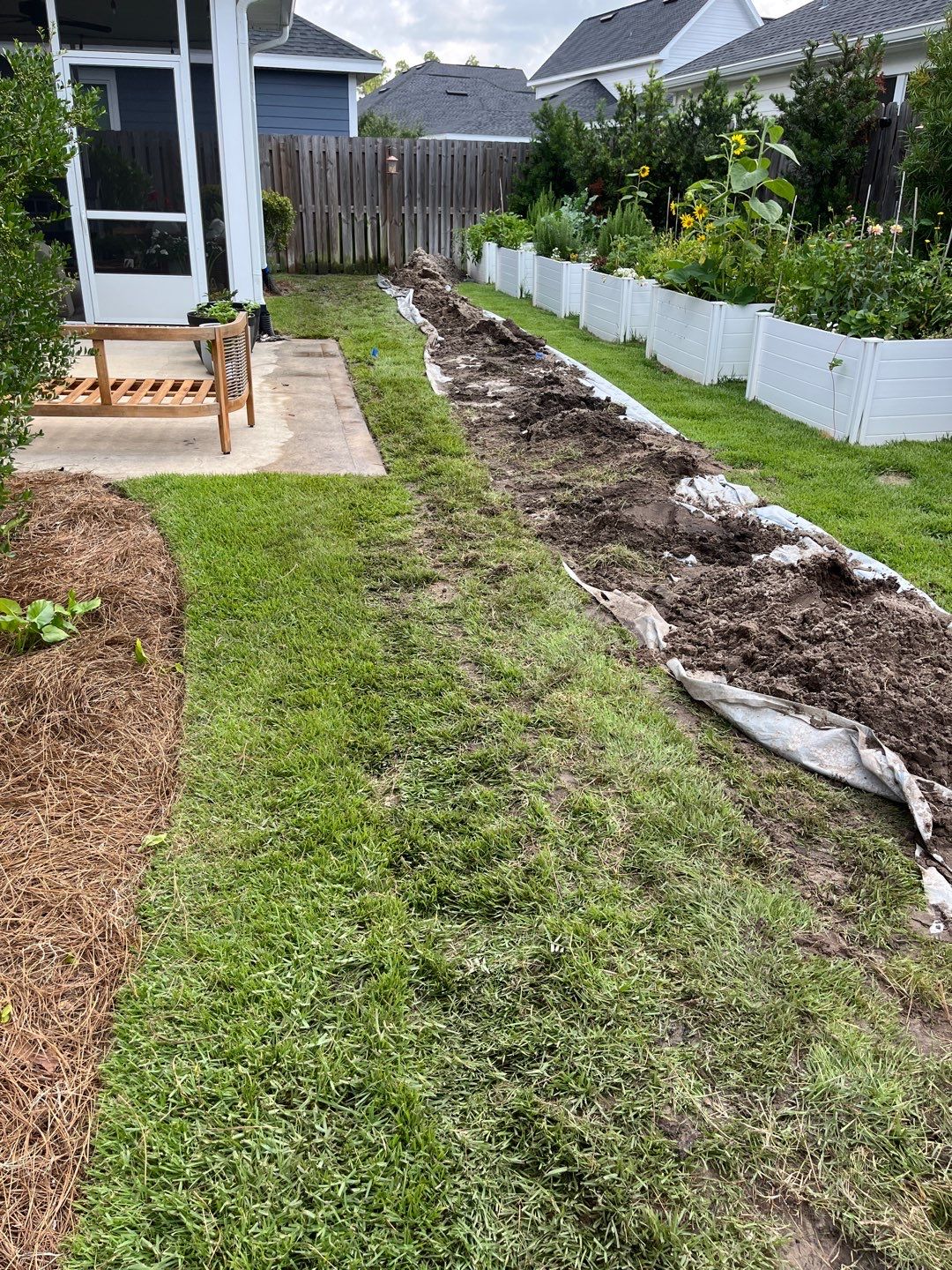 Our customer was having backyard flooding issues due to poor lot design which is all to common. During heavy rains the small back yard would pool water onto the cement patio and even encroach the screened back porch.